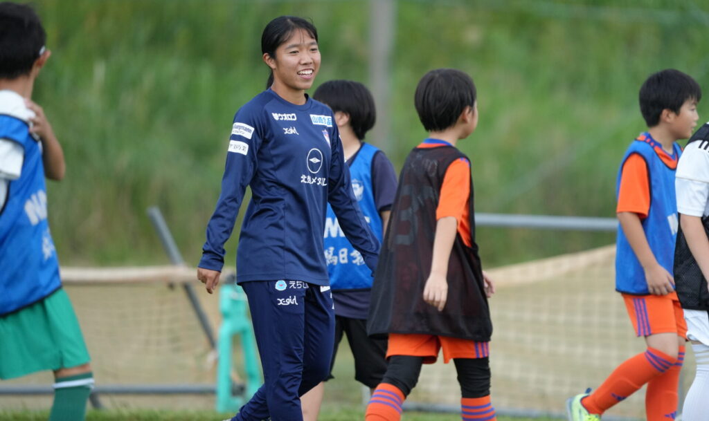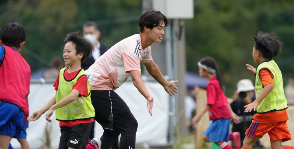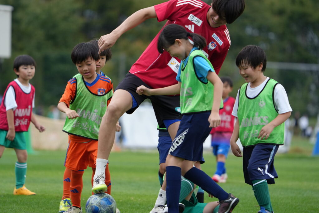 子どもたちが選手顔負けのドリブルを見せたり、選手のラストパスから子どもたちがシュートという美しいゴールも続出。サッカー教室ではあるものの、見どころ満載の「試合」が繰り広げられました。
