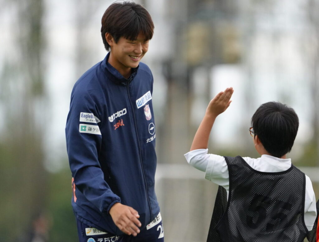 長崎選手が「時間があっという間でした!みなさんもこれから自分の目標に向かって頑張ってください!」と感想を述べ、笠井選手が「今日は僕が一番多くゴールを決めたと思うので、また一緒にサッカーをするときまでに、お互いにもっとうまくなりましょう!」と呼びかけると、子どもたちの「はい!」という大きな返事がピッチに響き渡りました。